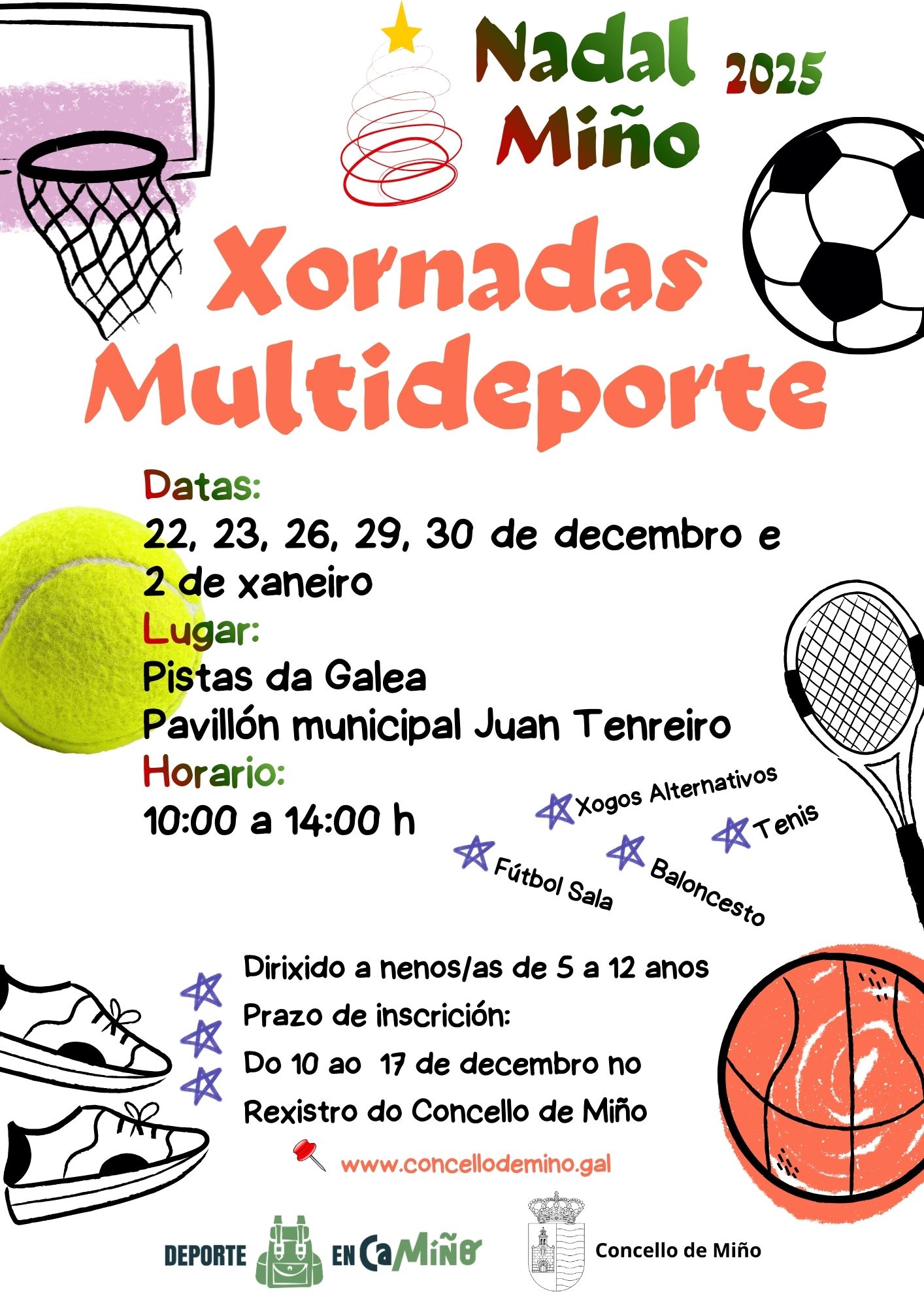 Xornadas de multideporte en Nadal, para nenas/os de 5 a 12 anos.