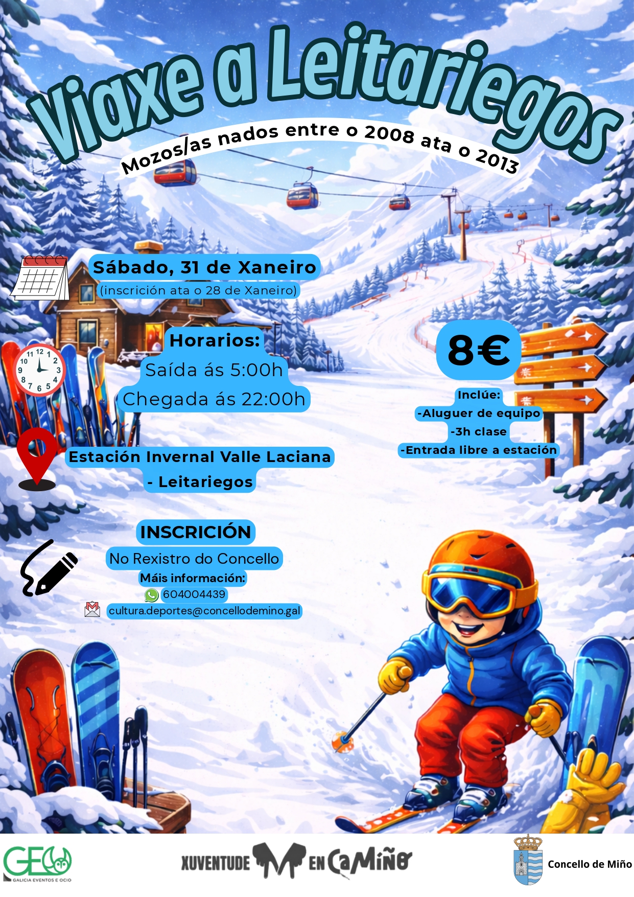 Cuarta actividade enmarcada dentro do programa 2025-20026 de Xuventude en Camiño. Neste caso, un viaxe ata Leitariegos, á estación invernal Valle Laciana para vivir unha xornada de esquí.