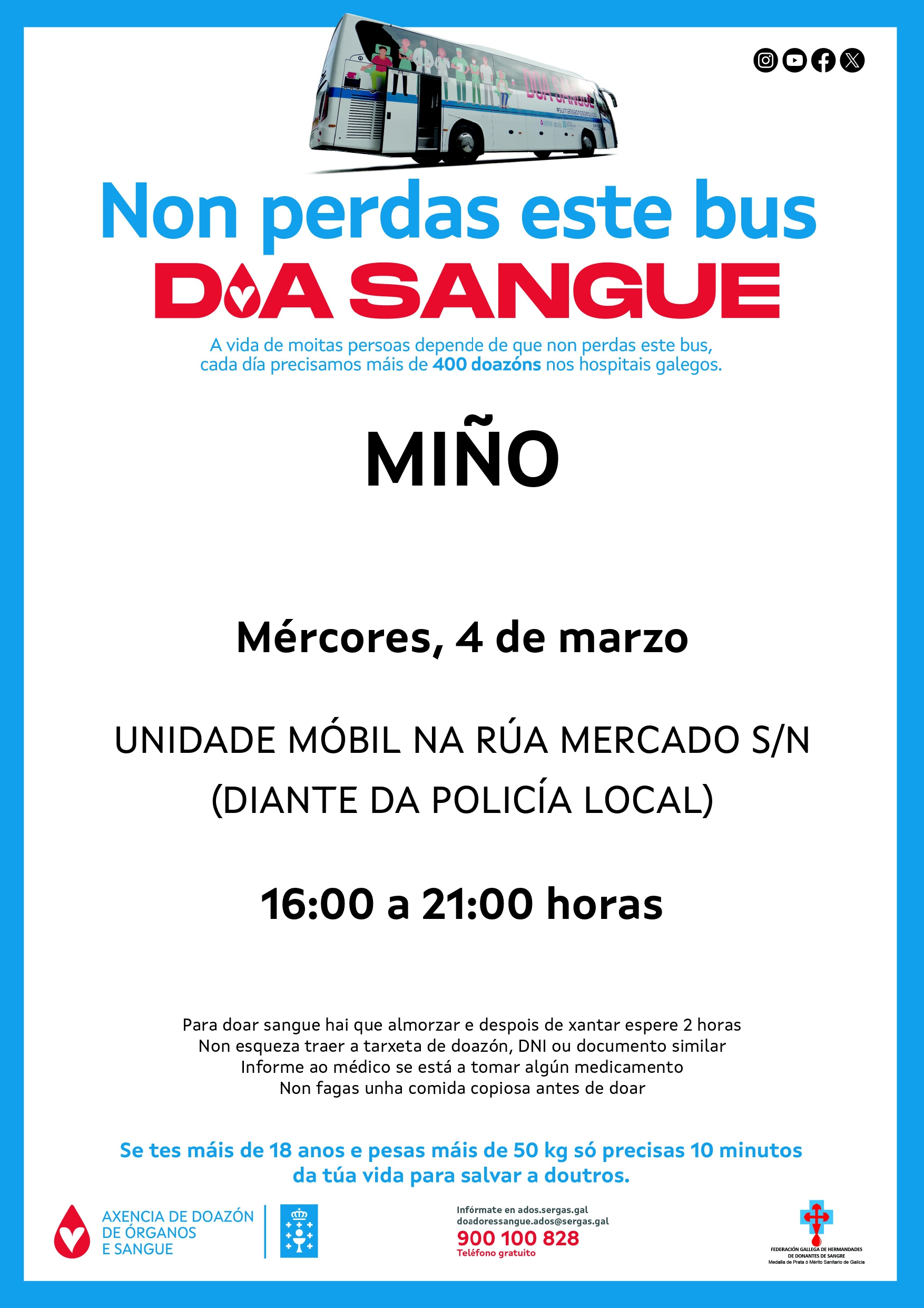 A unidade móbil da ADOS estará en Miño o mércores 4 de marzo, de 16 a 21 h.