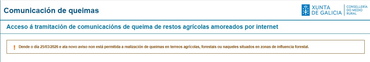 A Xunta prohíbe as queimas agrícolas e forestais ata novo aviso, quedando anulados os permisos xa concedidos.